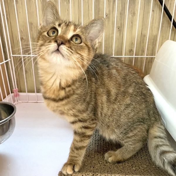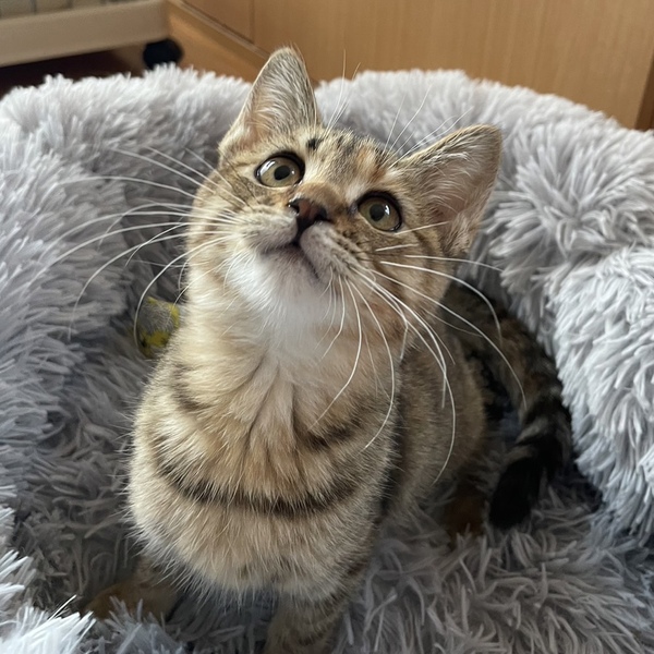 | 特徴(性格など) | キジトラの子猫、ペコちゃんです。 10月初旬に6匹きょうだいで保護されました。 好奇心旺盛で、こちらを見上げるお顔がとってもかわいいです♡ ペコちゃんに、すてきなご縁がありますように! 少しでも気になられましたら、お気軽にご連絡くださいね。 ●より迅速に対応させていただくため、差し支えなければ最初のご連絡で、 「お電話番号と大体のご住所」をお書き添えください。 ●シニア世代の方でもご応募可能です。 ★YouTube動画もご覧ください! https://youtu.be/Q6A034x8uhs?si=DWNo-XGwlNmtjtvR |