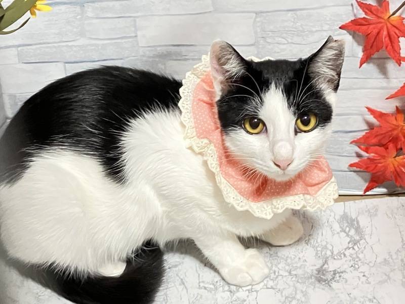 | 里親募集する理由 | 8月頃、民家の庭に現れご飯をもらっていました。 そこで出会ったマーシャルちゃんと寄り添い、住人に可愛がられながら外で過ごしていました。 少し大きくなり、外には雄もいる事から妊娠する前に避妊手術の相談があり、リリース予定でしたがあまりに可愛い子でしたので、そのまま保護する事にしました。 |