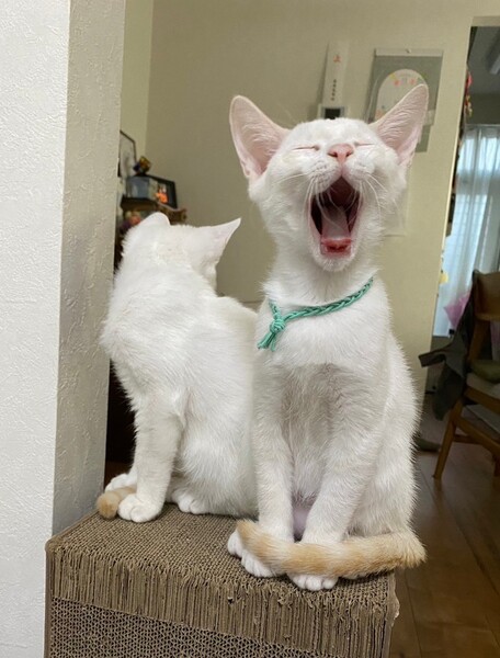 | 特徴(性格など) | ★仮ネーム ミルク ★性別 男の子 ★月齢(予想誕生日) 3ヶ月(8月1日頃) ★性格 きれいな青い目と、茶白のシマシマしっぽがチャームポイント。慎重派で、様子を伺いながら遊んでます。とりあえず隠れるけど、すぐ出てきてくれます。抱っこより撫で撫でが好き。近づくとすぐにゴロゴロ言っちゃう!おもちゃで遊んだり、2人でかくれんぼしたりしてます。どちらかというとおっとりボーイ。鳴き声がキューキュー、キュートです? ラテ君と兄弟です。 【医療処置】 検便︰済 ノミダニ虫駆除︰済 3種混合ワクチン ︰1回目 済 2回目 未 エイズ白血病ウイルス血液検査︰陰性 去勢避妊手術︰未 健康状態︰良好 |