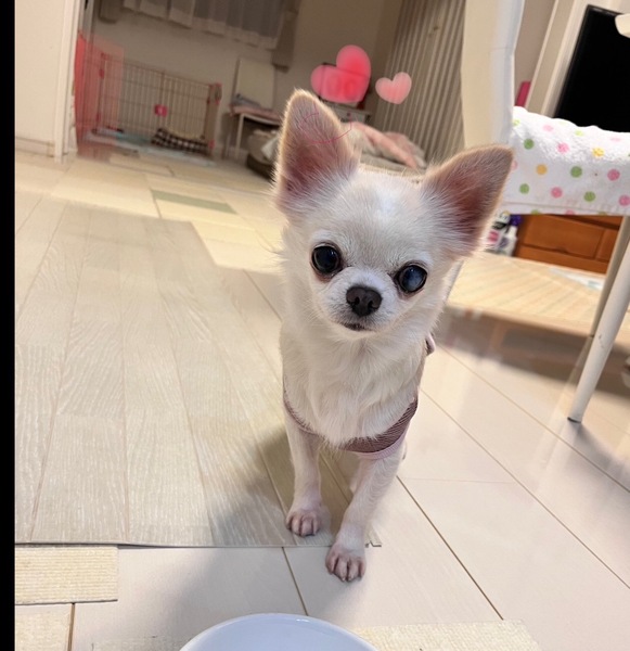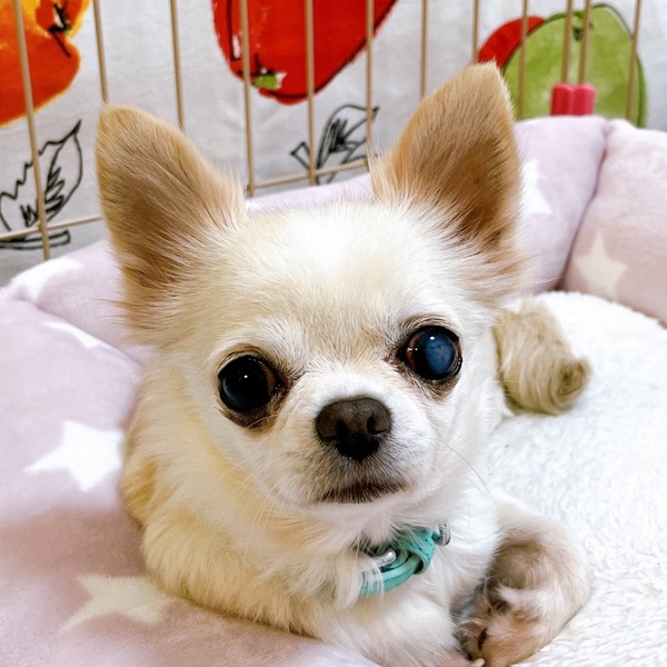 | 特徴(性格など) | 【名前】 鈴 (メス) 【年齢】不詳ですが4歳くらいです。 【犬種・色】ロングコートチワワ (白・茶) 【体重】2.5キロ(2023.11月) 【性格】攻撃性ゼロな子なので、おっとりとした性格の犬とは喧嘩なく一緒にいれますが、気の強い犬にはやられっぱなしになってしまいます。人にも従順なので、目薬なども毎日、楽にすることができます。 【吠え】多少吠えるときもありますが、声帯を切られているので可愛い小さい声です。 【散歩】まだ練習していません。 【トイレ】シート成功率80%くらいです。 【希望する条件】チワワらしくビビリなところもありますが、逃げ回ったりしないので飼い主さんに慣れれば甘えたりするようになると思います。 【その他】一人で遊んだり、自分だけの時間を過ごすことも好きな子なので、お留守番があっても大丈夫なタイプです。ただし、ケージに鍵をかけて飼育希望の方はお断りさせていただいております。 ※ 高齢者・単身世帯のお申込み可。 健康状態 血液検査などで内科の方は特に問題ありませんでした。片目が白内障になっているので朝晩の点眼が必要です。 なんでもよく食べるし、お腹も丈夫です。今はドライフードを食べています。 お申し込みはこちら↓ https://mint-dog.jimdofree.com/ |