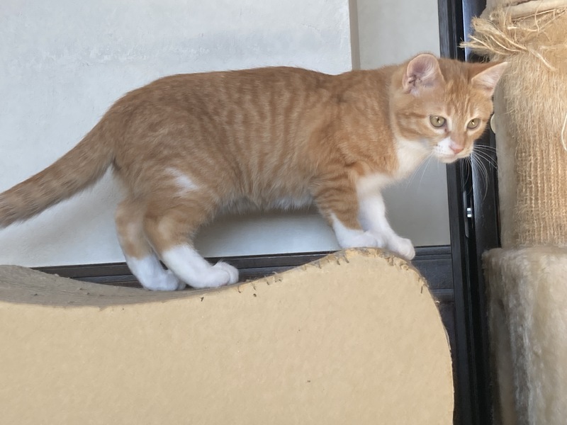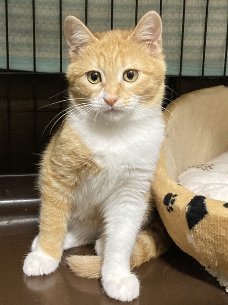 | 特徴(性格など) | 生後約4ヶ月位の男の子。 超ビビり。 捕まえてしまえば触れるけど、人間にまだ馴染めず手を出すとシャーシャー言いながら逃げます。 でも猫は大好き! 玩具でよく遊びます。 気長に慣れるのを待ってくれる里親さんがいたらいいな。 仮名カロ君 特徴は左右の後脚に白のライン模様あり。どうぞ宜しくお願い致します! |