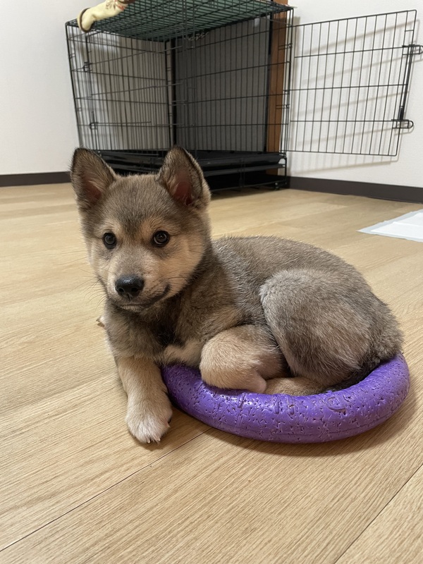| 特徴(性格など) | とても懐っこく人も犬も大好きです。 トイレ、散歩、車OK。 食いしん坊で甘えん坊の赤ちゃんです。 |