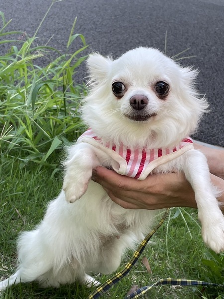 | 特徴(性格など) | 人懐こい子ですが、甘え方がわからない 感じです。慣れたら甘えん坊になると思います。 他のワンコと問題なく過ごしています。 一緒にレスキューされたポポちゃんと 仲良しです。 |