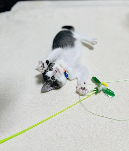 | 特徴(性格など) | 子猫らしく人見知り一切なし、愛想抜群。すぐお腹出して降参ポーズします。笑 とにかくわんぱく坊主で、疲れを知りません。ごはんを食べることも忘れ、すこぶる走り回ってます。 ずーっと見ていられる可愛いさです!! |