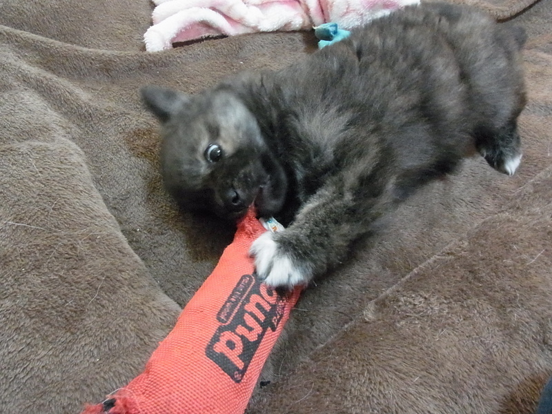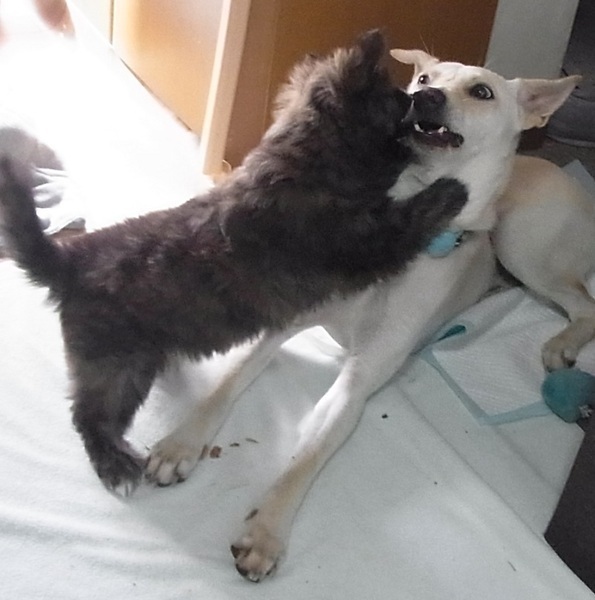 | 特徴(性格など) | ★近日中にトライアルを始める予定です。実際にトライアルが始まりましたら、里親募集はいったん終了させて頂きます。 運良く物心つく前に保護でき人と一緒に生活しているので、警戒心なく人を頼る子になりました。 しっかりした性格で人にも犬にも物怖じせず積極的に関わっていきますが、ここ数年同じ場所で保護された野犬子犬達と同じ血縁だとすると、成長と共に慎重で内弁慶な面が出てくる可能性が高いです。 とっても食いしん坊で、何でも美味しそうに一生懸命食べます。 お皿の音やミルクを作るポットの音をすぐ覚え、ごはんの用意を始めると寝ていても飛び起きて台所に走ってきます。 今は何でも嚙みたい盛りなので嚙むオモチャがたくさん必要です。 天気の良い日に外に連れていくと、走ったりボールと戯れたり目を輝かせて生き生き遊びます。 |
