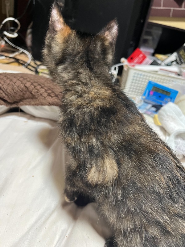 | 特徴(性格など) | 凄く人慣れしていて活発な可愛い子です。 尻尾は真っ直ぐです。 サビ柄の綺麗な毛色です。 生後2ヶ月から3ヶ月ぐらいです。 |