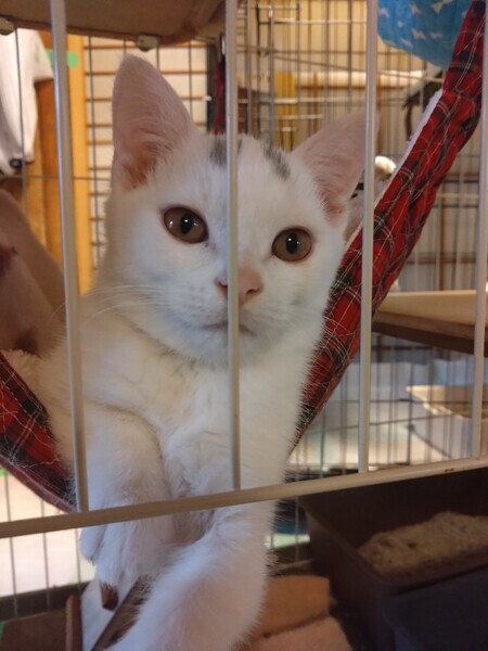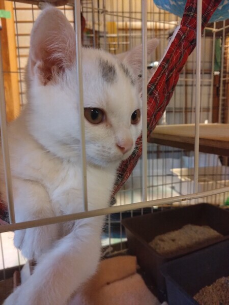 | 特徴(性格など) | 体はきれいな白い毛並みで、額にはグレーのブチがあります。 人に充分慣れていて甘え上手です。 男の子ですが、とてもおとなしくてかわいいこです。 トイレの躾出来ています。 虫落とし済み |