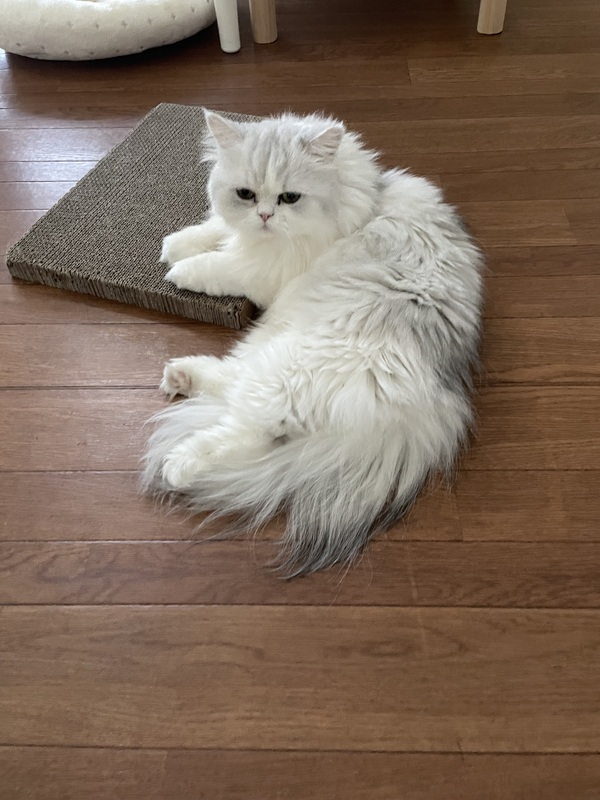 | 特徴(性格など) | 長毛の白とグレーの柄です。 抱っこはあまり好きではないですが、甘えん坊の優しい子です。 |