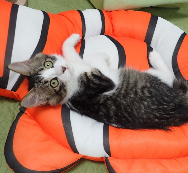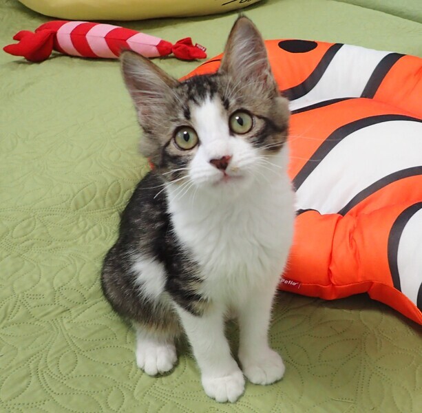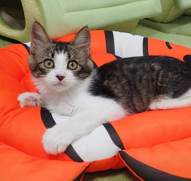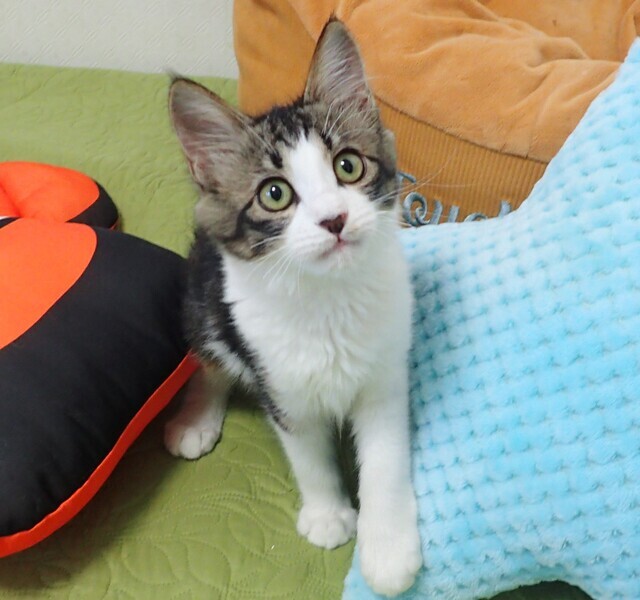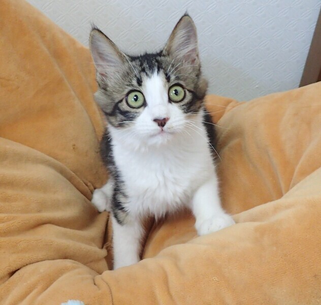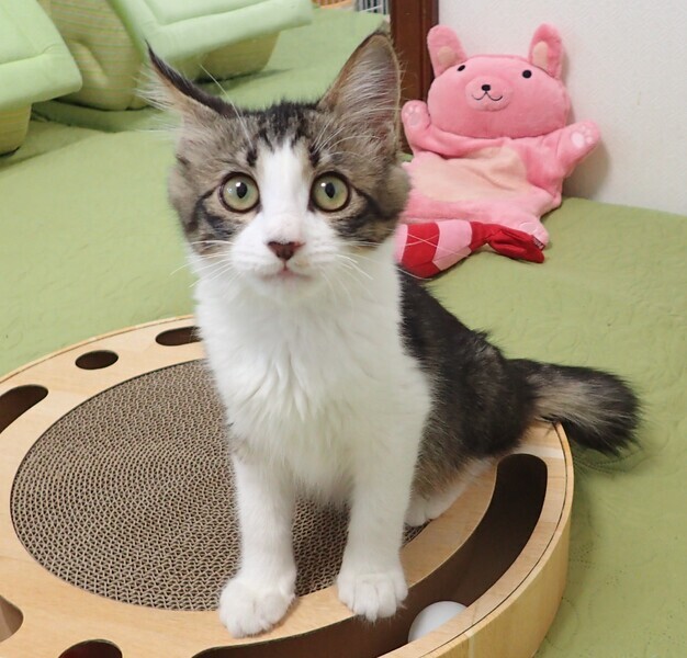 | 里親募集する理由 | コンビニにお買い物に来た人が、小さい仔猫の鳴き声に気付き、隠れるのを探して探して、やっと保護してもらえました。 | ||