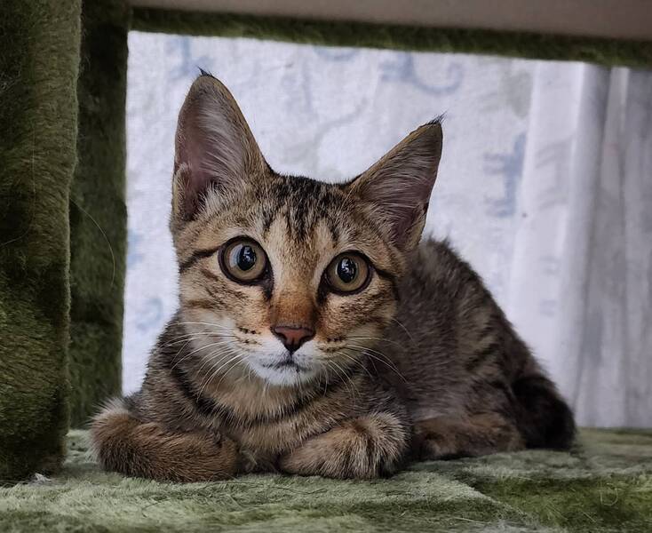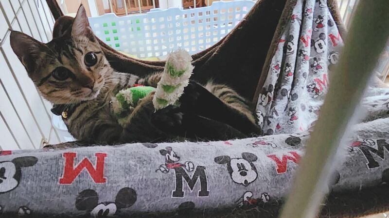 | 特徴(性格など) | <色柄> キジトラ <性格など> 元気いっぱいで遊ぶのが大好きです! 野良で生活していた為か、かなり食に対してアグレッシブです。 攻撃的ではありませんが、噛み癖が多少有ります。 抱っこすると大きくゴロゴロ鳴いて甘えきて、人間の後もついて歩き、とても人懐っこいです。 おもちゃを投げると取ってきてくれてとても可愛いです。 一緒に遊んでいると笑顔をもらえます! トイレは、現在システムトイレで鉱物の砂を使用しています。 保護当時は固まるネコ砂(紙タイプ)も使用していました。 どちらも上手に使えます。 保護初日から、爪切りやシャンプーお利口に出来ました! キジトラ特有だとは思いますが、はじめての場所や初対面の人には緊張してしまいますが、慣れは早いほうだと思います。 保護当初から風邪、下痢、目やに、その他体調不良などもなく、大変健康な状態です! 猫エイズ、猫白血病も陰性です! 未去勢になります。 現在、外出時はケージでのお留守番を問題なく出来ています。 ハンモックが大好きです! |