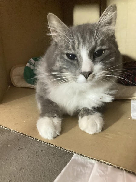 | 特徴(性格など) | ものすごく甘えん坊で目が合うと鳴きながら走ってきます。 一応サバ白の半長毛ですが、トラ柄が少ないのでグレー白のような感じです。夏は短毛寄りで冬は長毛です。 ビビりさんなので先住犬猫さんがいない家庭か先住がいる場合は1、2匹の家庭、最悪の場合部屋を分けることが出来るご家庭希望です! |