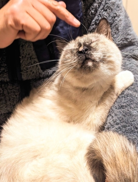 | 特徴(性格など) | 1月28日(日)12:00~16:00(最終申込15:30) ねこざんまい譲渡会【東日本橋会場】に参加予定です! 会場の案内はこちら♪ https://ameblo.jp/neko3mai/entry-12807190298.html ※猫ちゃんとのお見合いは譲渡会となります。 譲渡会ご来場につきまして、事前予約は不要です。 どうぞご家族みなさまでご来場下さい♪ ★★★ご来場前に必ずご確認下さい★★★ 《里親様へお願いはこちら》 http://www.neko3mai.com/condition/condition.html 《家族募集中猫ちゃん一覧はこちら》 http://www.neko3mai.com/entrycats/entrycats.html ◆ 名 前 ◆ ノエルちゃん ◆ 年 齢 ◆ 推定1歳 ◆ 性 別 ◆ 女の子 ◆性格◆ シャム系ブルーアイの女の子。 とても穏やかで甘え嬢のノエル。 人間が好きなので撫で始めるとすぐに爆音ゴロゴロが始まり、クネクネしながらお腹を見せてきます。 いつも人に寄り添っていたいお嬢様です。 しょっぱい顔で見つめてくることがありますが、それもたまらなく可愛いのです♥️ 高い位置での抱っこは少し苦手で、人間が座った状態で抱っこすると落ち着きます。 爪切りはそっとゆっくり行えば一人でもできます。 激しく走り回ったりすることなく、おもちゃで遊ぶことも控え目ですが、ゴミ箱に興味をもったり狭い所に入ることがあるので、整理整頓が行き届いたお部屋でお願いします。 爪研ぎはダンボールよりカーペットタイプを好みます。 とてもキレイ好きでトイレが汚れていると我慢することがあるので、こまめな掃除や2つ以上トイレがあると快適に過ごせます。 初めての人や環境には最初は緊張すると思いますのでノエルのペースで見守ってたくさん寄り添ってください。 左後足にごく一部皮膚が硬くなっている部分がありますが、獣医師によると全く問題ないとのことです。 ◆譲渡に関しての希望 他の猫さんが苦手なのでノエル1匹を可愛がってくださる方を希望します。 脱走や危険防止対策は必須ですので、ご理解・ご協力をお願い致します。 間取り図や玄関やベランダなどの写真をお持ちいただくと、対策の具体的なアドバイスがしやすいかと思います。 フードやキャリーバッグ、トイレ等、一部の準備品を指定させていただいております。 ペットではなく、《共に暮す家族の一員》としてお迎えくださるお家を希望しております。 先住犬や小さなお子様がいらっしゃるご家庭への譲渡は、ご希望に添えない場合がございます。 脱走や危険防止対策をしていただけないご家庭への譲渡は、大変申し訳ございませんが遠慮させていただいております。 |
