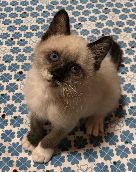 | 特徴(性格など) | 【仮称】ピヨ君 ピヨちゃ~~んと呼べば飛んでくる可愛い男の子です。 手先が手袋をしたように白いのがチャーミングなシャム系イケメンです。 人の手で育てられたので人見知りはほとんどありません。 とにかく元気でいつも走り回っています。 大きな猫さんにじゃれついて押さえつけられてもめげずにやり返す(笑)不屈の精神の持ち主です。 食事はドライフードと缶詰を1日4回です。 トイレは失敗無く出来ています。 まだ小さくて、こまめな食事のお世話が必要ですので、留守番の短いご家庭に限らせていただきます。 甘噛みしますので、小さなお子様のいらっしゃらないご家庭の方が安心です。 たばこの副流煙は猫のリンパ腫の発症率を高めますので、ご家族に喫煙者のいないご家庭を希望します。 |