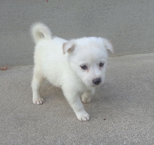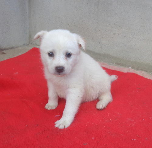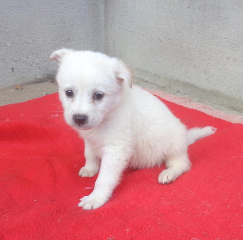 | 特徴(性格など) | 性格:人の手によりミルクから育ちましたので人が大好き、甘えん坊くん子犬。仲間の子犬たちと元気に遊び社会性を学習中です。そろそろ甘噛みが始まりそうです。 体重:1.4kg(12月12日) 医療面:健診済み・ノミダニ予防済み その他、予定しています。 生後二ヶ月頃になると初回ワクチン接種を予定します。 |
