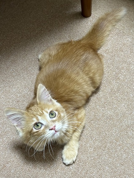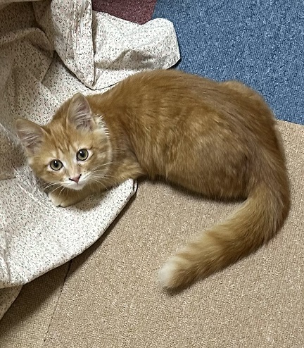 | 特徴(性格など) | 仮称:シナモン ふんわりブラウン、柔らかい半長毛のシナモンちゃんです。 抱き上げた瞬間から喉をゴロゴロ鳴らしたり、眠くなると人のお膝にのぼってウトウトし始めたりする甘~い女の子。 人が大好きで、撫でられるのも大好き。 気持ちよさそうに目を閉じたお顔は、こちらまで幸せな気持ちになるくらい可愛いです。 性格もよく、人見知りもありません。 保護当初の風邪の影響で涙が溜ります。その都度優しく拭き取ってください。 現在はよく食べ、快便、元気いっぱい走り回って毎日過ごしています。 食事はドライフードとウエットフードを1日4回です。 お気に入りのフェルトのボールで一人で楽しそうに遊び、可愛いふわふわの手で猫じゃらしも追います。 毛玉になりやすいので長毛のお手入れの知識があり、時間に余裕を持ってできるご家庭向きです。 まだ手が掛かる月齢ですので、細やかなお世話が必要です。 その為、お留守番時間が少なく、甘噛みがありますので小さいお子様のいないご家庭にお願いしたいと思います。 脱走防止対策を実施して、終生完全室内飼育のできるご家庭にお譲りします。 適切な時期にワクチン接種や避妊手術をお願いします。 たばこの副流煙はリンパ腫の発症率を高めますので、ご家族に喫煙者のいないご家庭を希望します。 |