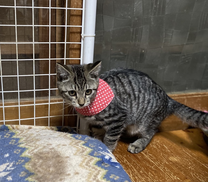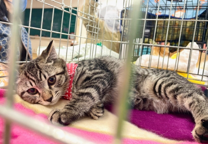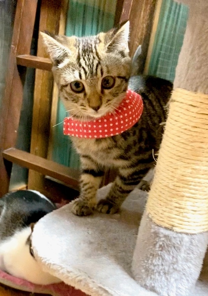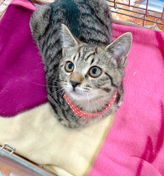 | 特徴(性格など) | 丸顔とまん丸なタレ目気味の瞳、キョトンとした表情がとても可愛いキジトラの女の子です。 人懐こくて甘えんぼで、おもちゃで遊ぶのが大好きです。 子猫ちゃんらしいコミカルな動きがたまらなく可愛いアキちゃんです! 一緒に過ごせる先住猫さんのいるお家、1匹飼いの場合はお留守番の少ないお家を希望します。 ぜひ一度、写真よりずっと可愛いアキちゃんに会いにお越しください♪ |