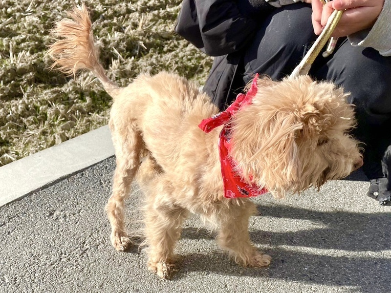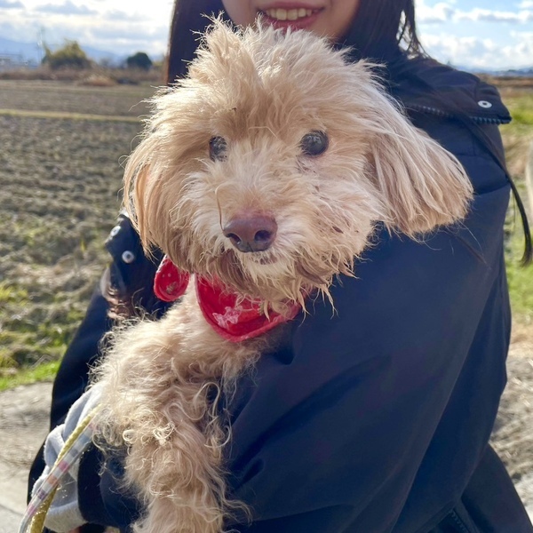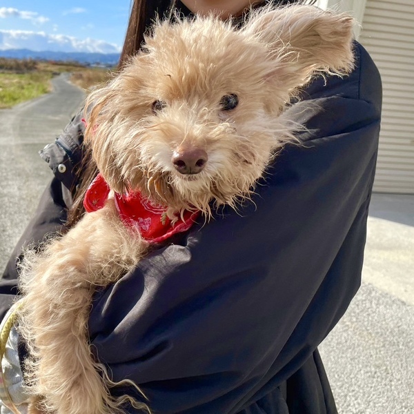 | 特徴(性格など) | トイプードルMIXの日菜(ひな)ちゃん、3kg。 くちゃくちゃの、ひどい状態で捨てられていました。 少し怖がりさんですが、人慣れしていて抱っこさせてくれます。 お散歩も好きで、しっぽを振りながら楽しそうに歩きます♪ (動画もご覧ください^^) かわいい日菜ちゃんを、温かく迎えてくださる方を探しています。 少しでも気になられましたら、お気軽にご連絡くださいね。 ●より迅速に対応させていただくため、差し支えなければ最初のご連絡で、 「お電話番号と大体のご住所」をお書き添えください。 ●シニア世代の方でもご応募可能です。 |