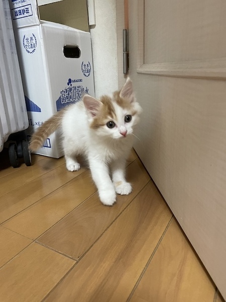 | 特徴(性格など) | ☆☆☆ご希望の方は、以下のアンケートフォームにご記入の上、送信してください☆☆☆ ねこ親希望アンケート→ http://chibawan.net/contactform_cat 【猫No】3761 【愛称】ぱむ 【性別】オス 【年齢】推定6週(23/10/31頃生) 【毛色】茶白(半長毛) 【体重】820g(23/12/18現在) 【状態】初回ワクチン接種済(23/12/13)、血液検査済(エイズ-・白血病-)、検便検査(問題なし)、駆虫薬塗布済 【預かり場所】埼玉県草加市 【日記】URL:https://www.instagram.com/naruru0710 アカウント:naruru0710 【経緯】柏市動物愛護ふれあいセンターより引き出し 【性格】まったり感満載のマイペースな男の子。 何に対しても動じることがなく人にも先住犬猫にもグイグイ近づいて遊びを誘います。 兄妹が寝ていても自分が起きたら構わず邪魔して起こすKYタイプですが、憎めないふわコロ感が魅力的な子です。 甘えん坊で、お膝上でなでなですると幸せそうにグルグルと喉を鳴らしています。 普段は兄妹のぴの・ぷりと「にゃんプロ」や「追いかけっこ」で遊んでいますが、遊び疲れると勝手に寝床に戻っていたり、その場で寝てしまっていることもあります。 何事も習得の早さは兄妹で1番です。 快食快便。トイレも完璧です。 生まれてから一緒に成長してきた兄妹ですので、ぴのと2匹一緒に迎えて下さるご家庭を希望します。 【補足】お届けは、去勢手術・マイクロチップ装着などの医療処置が終わってからを予定しています。 (24/01/15以降に手術を受ける予定です。) 【その他】完全室内飼育で終生愛情を持ってぱむと暮らしていただける方、脱走対策を労を惜しまず入念に施して下さる方、定期的なワクチン接種や、その時々において必要な医療処置等の健康管理を約束していただける方からのお問い合わせをお待ちしております。 ※大変申し訳ないのですが、猫が幼齢の為、単身の方・同棲カップルの方・小さなお子様のいらっしゃるご家庭・長時間のお留守番・55歳以上の方からのお申し込みはお断りする場合がございますのでご了承の程よろしくお願いします。 |