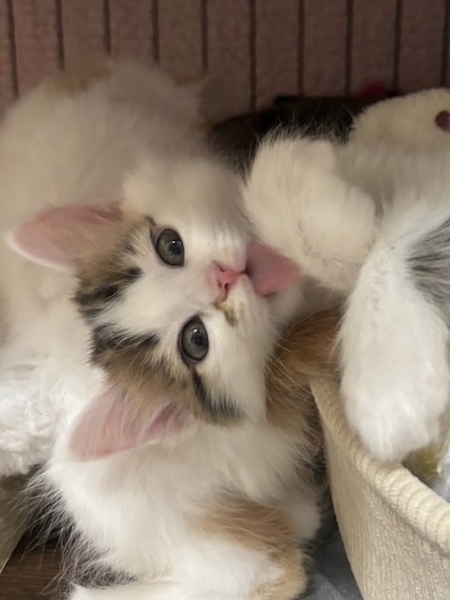 | 特徴(性格など) | ☆☆☆ご希望の方は、以下のアンケートフォームにご記入の上、送信してください☆☆☆ ねこ親希望アンケート→ http://chibawan.net/contactform_cat 【猫No】3763 【愛称】ぷり 【性別】メス 【年齢】推定11週(23/10/31頃生) 【毛色】三毛(半長毛) 【体重】1200g(24/01/20現在) 【状態】ワクチン接種済(24/01/15)、血液検査済(エイズ-・白血病-)、検便検査(問題なし)、駆虫薬塗布済、不妊手術済、マイクロチップ装着済 【預かり場所】埼玉県草加市 【日記】URL:https://www.instagram.com/naruru0710 アカウント:naruru0710 【経緯】柏市動物愛護ふれあいセンターより引き出し 【性格】なんてったってアイドル(^^♪ いつも保護主の傍らに、グルグル言いながらピタッと寄り添っている甘えん坊なド天然アイドルです。 可愛いお顔の愛くるしい大きな瞳で見つめられると、あまりの可愛さにギューッ❤としてしまいます。 性格もおっとりまったりで一緒にいるととても癒されます。 そんなアイドルですが「にゃんプロ」や「追いかけっこ」も大好きで、兄弟と対等に遊んでいます。 女の子故食は細いですが決まった量はしっかり食べ、トイレも完璧です。 赤ちゃんの時から全く手のかからない、ただただ可愛らしい女の子です。 【その他】完全室内飼育で終生愛情を持ってぷりと暮らしていただける方、脱走対策を労を惜しまず入念に施して下さる方、定期的なワクチン接種や、その時々において必要な医療処置等の健康管理を約束していただける方からのお問い合わせをお待ちしております。 ※大変申し訳ないのですが、猫が幼齢の為、単身の方・同棲カップルの方・小さなお子様のいらっしゃるご家庭・長時間のお留守番・55歳以上の方からのお申し込みはお断りする場合がございますのでご了承の程よろしくお願いします。 |
