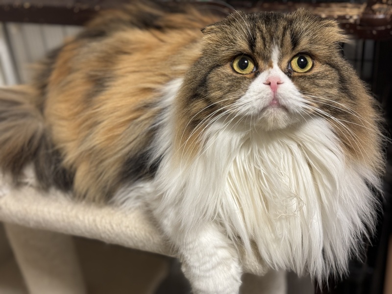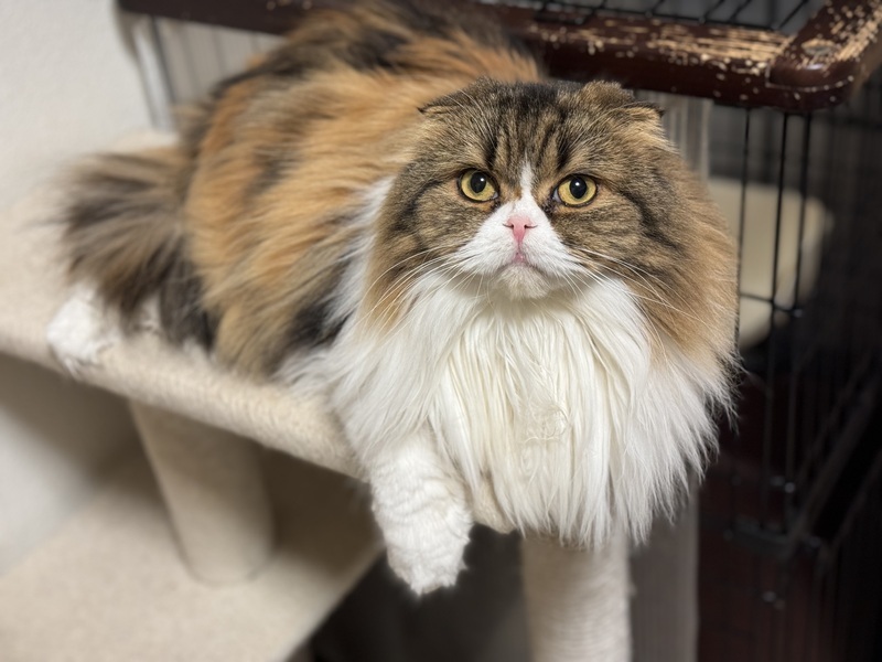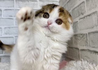 | 特徴(性格など) | スコティッシュフォールドの女の子です。 色柄はキャリコです。 性格は、マイペースで穏やかな子です。 |