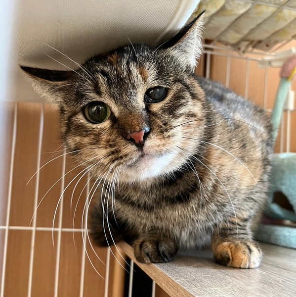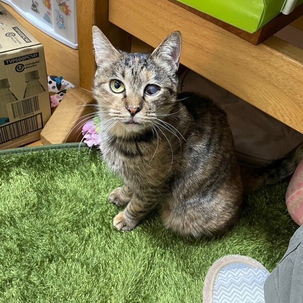 | 特徴(性格など) | お外にいた時は「食べ物を下さい」と猛烈に訴えて積極的な感じでしたが、保護してからは穏やかで控えめな性格になりました。きっと子猫を守るために必死だったのでしょう(母は強し)。満足な栄養を取れなかったおいもちゃんは猫風邪ウィルスにより片目が白濁していますが、光を感じる程度の視力はあるようです。日常生活に支障は全くありません。子猫も成長し手がかからなくなったので今はゆっくりと自分の時間を過ごせるようになってきました。人慣れはゆっくりで初めはシャーシャー言いますが、引っ掻いたりすることは一度もありません。 今は在宅勤務でいつも一緒に過ごしているパパに一番心を開いています。いっぱい頑張ったおいもちゃんのありのままを受け入れて幸せにしてくださるご家族との出会いをお待ちしています。 |