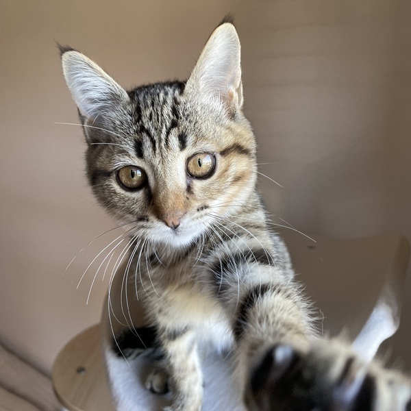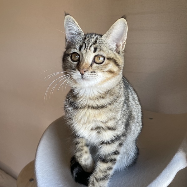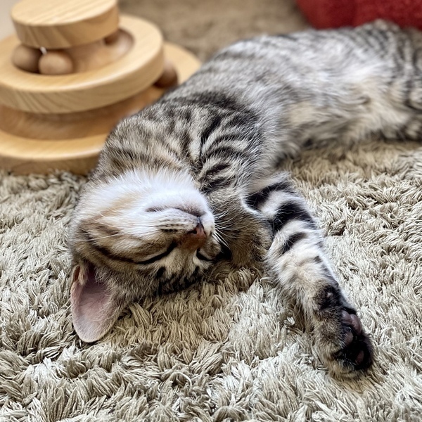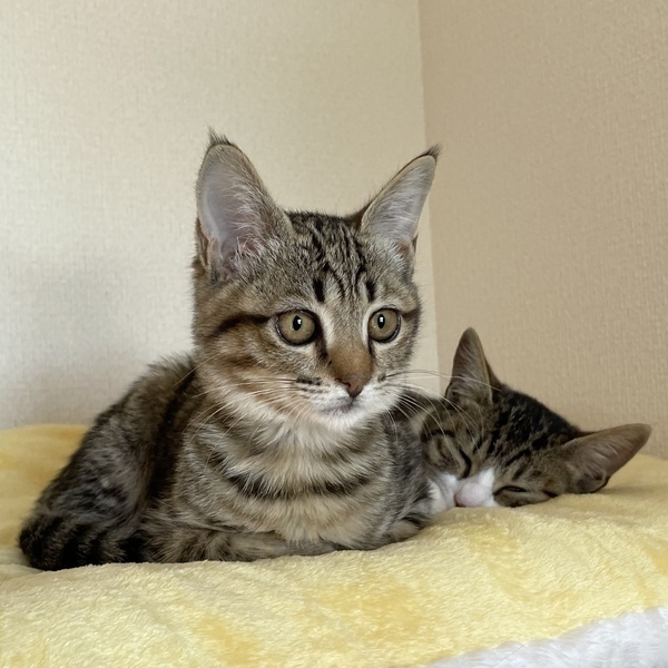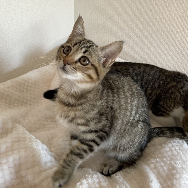 | 特徴(性格など) | タレ目でどこか儚げな雰囲気を纏うとらまるくん 細身で女の子のような愛らしいお顔をしていますが、ナメてもらっちゃ困ると言わんばかりのやんちゃボーイ(笑) おもちゃが大好きで、たくさん遊んで満足するとお膝によじ登って寝るのがルーティン 甘えん坊モードの時は指を吸ったり甘噛みしたり、まだまだ幼い仕草に愛おしさが込み上げてきます 保護当時は猫風邪がひどく、骨が浮き出るほどガリガリでしたが、食欲旺盛なので徐々に身体つきもしっかりしてくると思います やんちゃ盛りなので、走り回ってもOKなお家を希望します 健康管理の徹底、清潔な飼育環境、脱走対策は必須になります 具体的なお話をするうえで、お部屋のお写真(全体・窓・玄関)や間取り図を持参頂けますと大変ありがたいです ⭐︎兄妹でお迎え頂けるご家庭を優先させて頂きます ⭐︎幼齢のためお留守番時間が短いご家庭を希望しております |