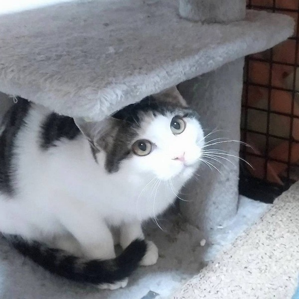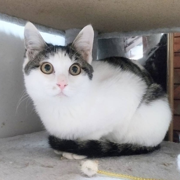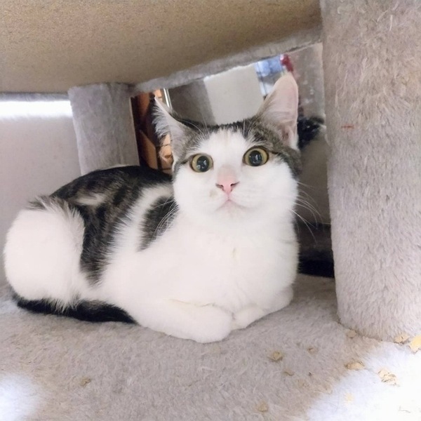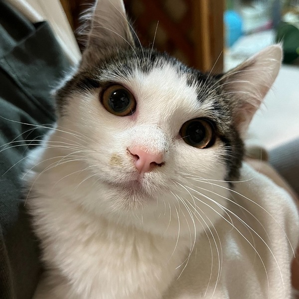 | 特徴(性格など) | 触り心地のいい毛質と可愛い前髪。サバ白の白がとても綺麗なよもぎちゃん。 ご飯もオヤツも譲ってしまう控え目な女の子で抱っこも撫で撫でも固まっていますが受け入れていて動くオモチャに反応しワンテンポ遅れながらも保護猫仲間と一緒に追い掛け走り回っています。 安全に暮らせるように脱走対策、お部屋の片付けを徹底してくださる方。 玄関や窓まわり、リビングなど対策が必要な場所の写真を見せていただけるとより提案がしやすいです。 |