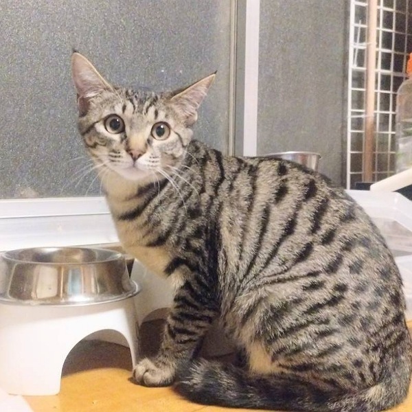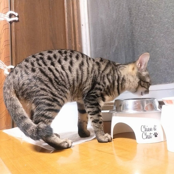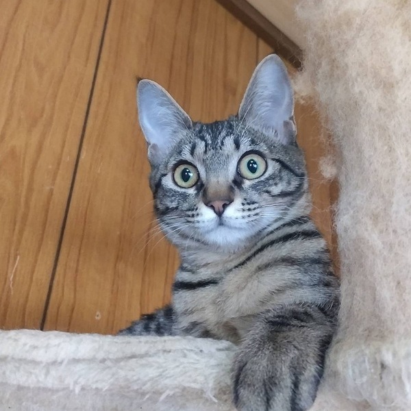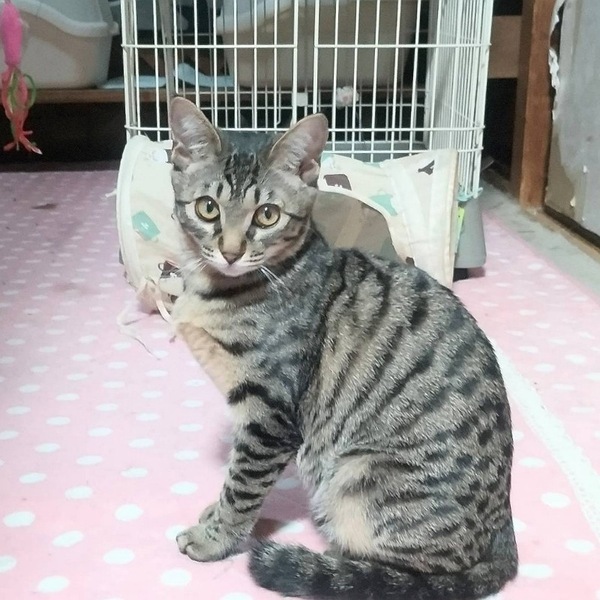 | 特徴(性格など) | 可愛いお顔に小柄な体。 ピューマのようなヒョウのような模様としなやかな肢体が魅力です。 オモチャを振ると出て来て、飛んで跳ねて追い掛け走り回っています。撫でようと手を出すと肉球の優しいパンチでペシペシに思わず笑顔になります。 安全に暮らせるように脱走対策、お部屋の片付けを徹底してくださる方。 玄関や窓まわり、リビングなど対策が必要な場所の写真を見せていただけるとより提案がしやすいです。 |