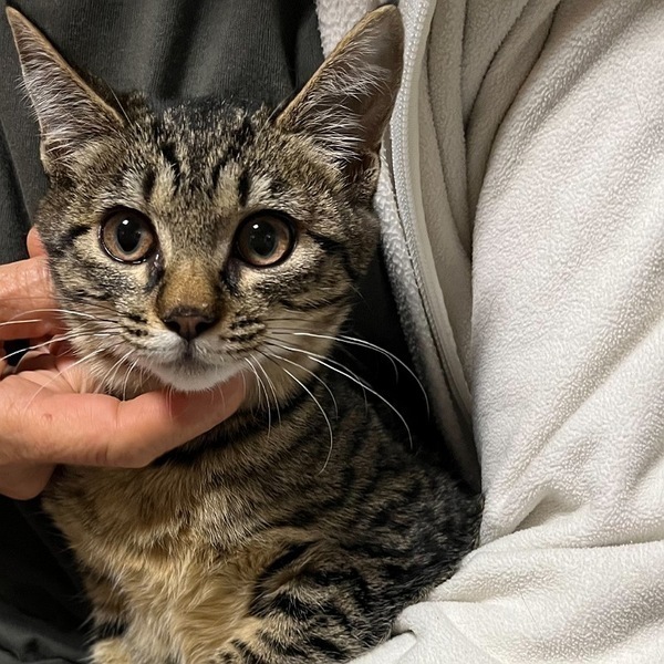 | 里親募集する理由 | 餌やりさんのお家に通っていたママが産んだ3兄妹のひとりです。何日もダミー捕獲器で慣れてもらってから保護しました。 | ||