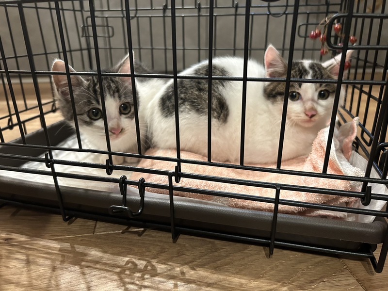 | 特徴(性格など) | ぎじしろ、真ん中分け 白地多いほうがメスさんです オスの子と一緒に保護してから4日目でもう、おもちゃで遊んだりしてます 人馴れしてます |