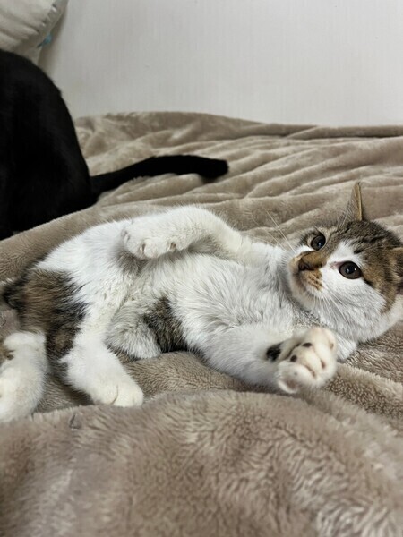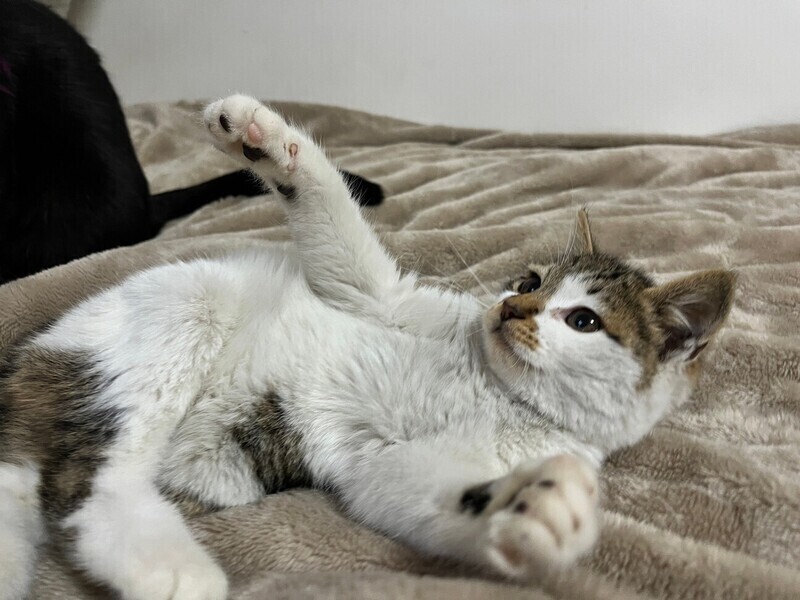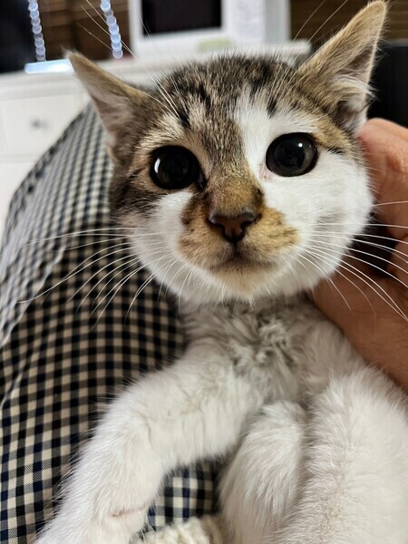 | 特徴(性格など) | ◆ポキ子ちゃん 人馴れしたかわいいキジ白子猫 ●月齢の小さな子猫は、以下の条件についてご了承の上で応募をご検討下さい。 ◆お留守番の少ないご家族を希望します。 ◆2匹でお迎えくださるご家族を優先いたします。 ◆小さなお子様のいるご家庭は状況によりお断りする場合がございます。 ◆高齢者のみのご家族からの子猫のお申し込みはお受けしていません。 ○生後2ヶ月くらい(2023年12月中旬時点)のキジ白の女の子です。体重は1.02kg(2023年12月19日時点)です。 ○しっぽは短くほぼありません。 ○川崎市内にて、骨盤骨折で歩けなくうずくまっているところを保護しました。 ○現在は高いところや走るなど速い動作はしませんが、歩くこともできますし排尿排便も問題なくできています。日常生活には全く支障ありません。 ○人慣れしていて撫でるとすぐにゴロゴロ言います。でもまだ少し怖いのかソファの下が逃げ込める定位置です。 ○元気にすくすく育っています。 ★ワクチン1回済み。 ★猫エイズ、猫白血病ともに陰性。 ★不妊手術は成長と体調をみて近日中に実施予定です。 ○YouTubeにも動画をあげています。こちらもご覧下さい。 「ポキ子」 https://youtu.be/mrbarSexfg ☆★☆★☆★☆★☆★☆★☆★☆★☆★☆★☆ ~1月14日(日)新山下にて譲渡会開催!~ ◎場所・・「島忠ホームズ 新山下店」 神奈川県横浜市中区新山下2丁目12−34 JR根岸線「桜木町駅」より横浜市営バス(8.26.58.148系統)乗車「貯木場前」より徒歩約5分 みなとみらい線「元町・中華街駅」より徒歩約15分 ◎日程・・1月14日(日)(雨天決行) ◎時間・・12時から15時 【14時30分受付終了】 (会場に利用可能な無料駐車場がございます。そちらをご利用くださいませ。) *混雑状況により、制限させて頂く場合がございます。 ※参加予定の犬猫は体調により参加できない場合があります。ご了承ください。 ☆★☆★☆★☆★☆★☆★☆★☆★☆★☆★☆ |