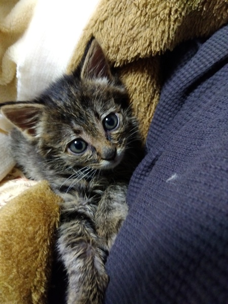 | 里親募集する理由 | 餌やりおばさんのところに子猫がいるということで、保護しました。サビちゃんは保護が遅れて風邪が悪化してしまいましたが、その後保護、母猫も避妊おわりました。子猫は里親さんお願いすることになりました。 | ||