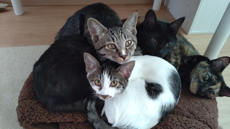 | 里親募集する理由 | 野良の母猫が交通事故にあって亡くなった為に、乳飲み子猫から大切に育てた子達です。本当の家族として迎えてくださる方希望です。 | ||