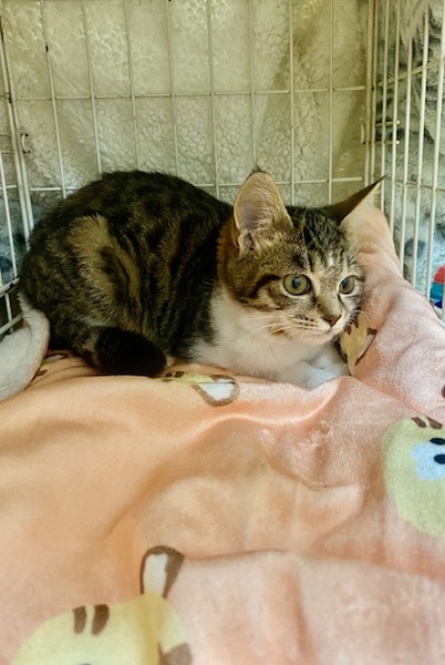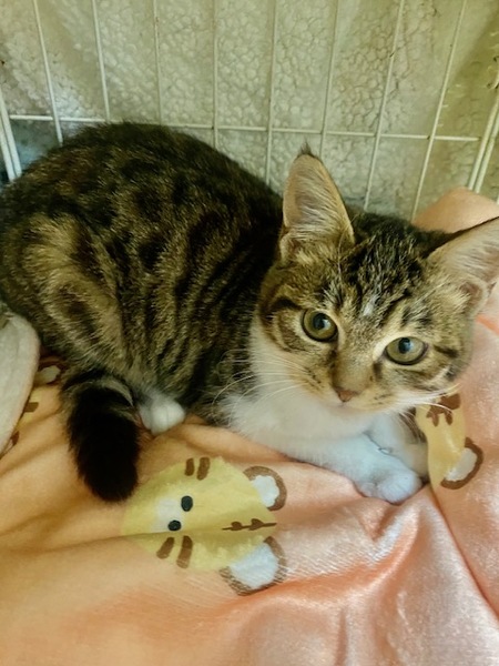 | 特徴(性格など) | キジ白でしっぽが長く、可愛い女の子です。 甘えん坊で他の猫ちゃんたちとも仲良く遊んでいます。 |
