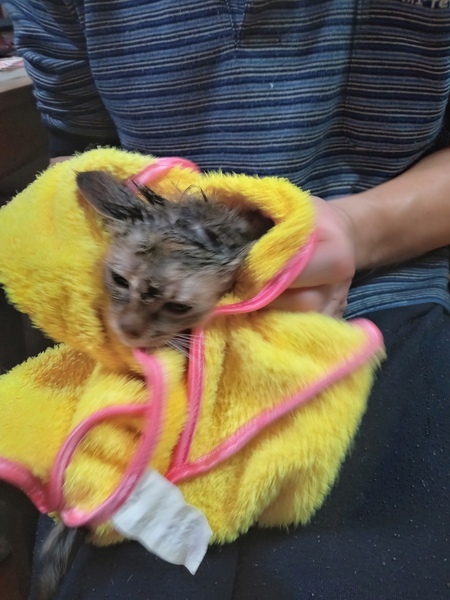 | 里親募集する理由 | グランドのネットに首が絡まって動けないところを保護しました。 家には高齢の犬2匹と兄妹猫2匹に新しく子猫を保護したところで、これ以上飼うのは難しいので里親さんを募集します。 |