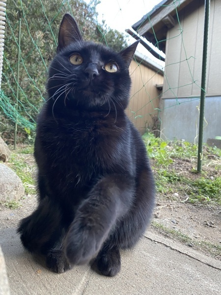 | 特徴(性格など) | きれいな黒猫です。 スリム体形です。 初めはとても怖がりでしたが、今は慣れて、撫でられるのが大好きです。撫でるとごろんとします。じゃらしでもよく遊びます。 |