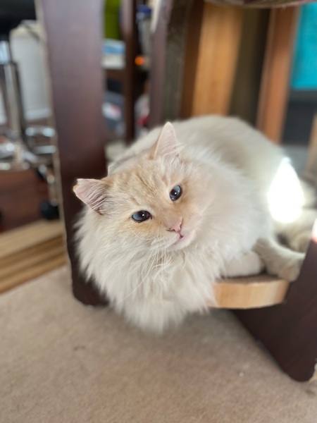 | 里親募集する理由 | 2022年秋ごろから自宅付近で見かけるようになり、2023年3月ごろより自宅の庭でえさやりを始めました。 同3月に去勢手術をしてくれた獣医さんから、元々飼い猫だったのではないかと言われました。 真っ白の長毛のため外猫生活ではどんどん汚れ、毛玉だらけになってしまい定期的なお手入れが必要な子だなと思っていたのと、寒くなってきてからは元気がなくなったように見えたため2023年の年末に保護しました。 私の家ではすでに保護猫を2匹飼っており、これ以上飼うのは難しいのと、甘えん坊の性格なのに十分には甘えさせてあげられない環境のため、里親さんを募集します。 |