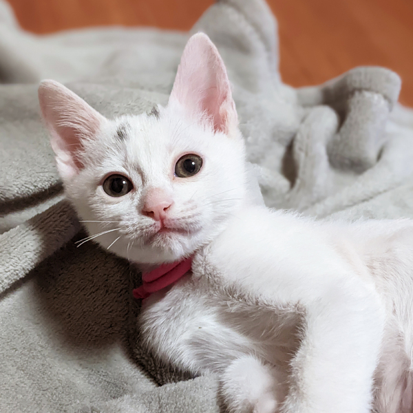 | 特徴(性格など) | 誕生日は11月3日頃。 目の開いていない、生後数日からミルクで育てたため人馴れは抜群です。 姉妹ともに膝の上が大好きな甘えん坊です。 姉妹の中でも特に甘えん坊で、抱っこが大好きです。 頭に黒い点がありますが、キトンキャップいい、成長すると薄くなったり、消える可能性が高いです。 姉妹3匹と、他の保護猫、大人猫と一般宅で仲良く暮らしています。 大人の猫ちゃんにも慣れています。 姉妹のキジとサビ猫も里親様、募集中です。 トイレや爪とぎも決められた場所でできます。 お留守番も上手にできます。 姉妹のキジ猫とサビ猫も里親様、募集中です。 |