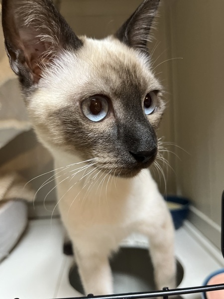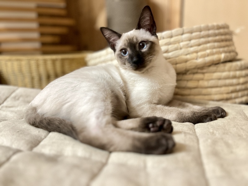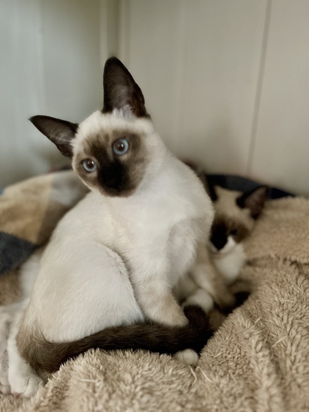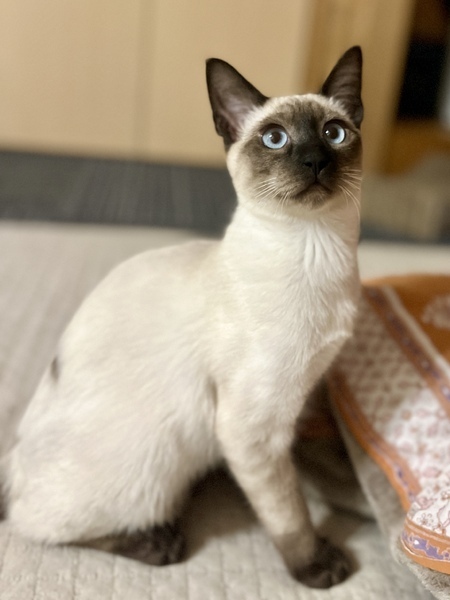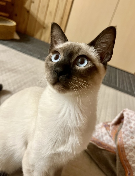 | 特徴(性格など) | クールでカッコイイシャム柄のもかです♡ きれいなブルーアイズで毛並みもツヤツヤです✨ 【性格】見た目はキリッとしていますが、とても人間や先住猫に優しい子です♡ 基本、平和主義です♪ 【人慣れ】臆病で怖がりっ子ですが、慣れてきたら甘えん坊になり抱っこも出来ます。モチモチしていて気持ちいいです♡ 【食事】 ドライフードの上にウェットフードを乗せて与えています。 ドライフードのみでも食べてくれます。 今のところ好き嫌いなく、たくさん食べてくれています。 【トイレ】 システムトイレ、固まる砂、どちらでも出来ます。 【爪切り】 ちょっぴり苦手なので少しずつ切っています。 【遊び】兄妹や先住猫達と追いかけごっこしたり、おもちゃでよく遊びます。 楽しいことや楽しい雰囲気が大好きです♪ 【他の猫との相性】 ドンドン詰め寄るタイプではありませんが、馴れてくると、大人猫に甘えたり、にゃんプロしたりと多頭に向いていると思います。 ※環境の変化や成長により、変わることがあります。 |