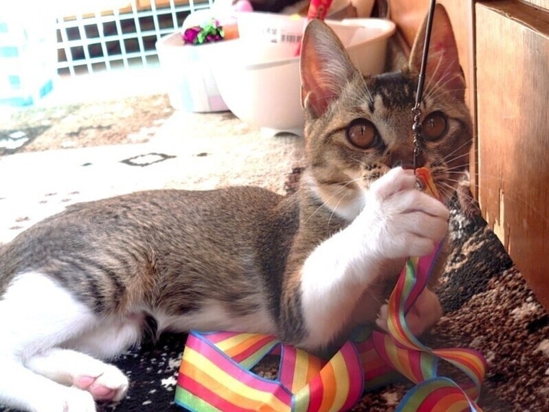 | 里親募集する理由 | 妊娠中の野良猫を保護し産まれた子です。7匹兄妹で生まれましたが4匹は幼い頃に亡くなってしまいました。 | ||