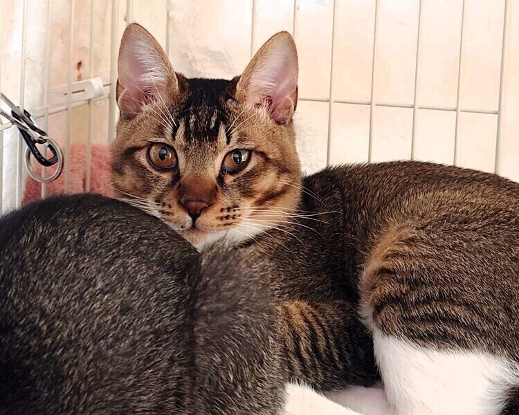| 特徴(性格など) | 【仮名】きんとん 【年齢】推定2023年8月12日生 【性別】オス 【ワクチン】済み 【去勢手術】済み 【駆虫】済み 【猫エイズ白血病】どちらも陰性 【その他健康状態】生後7ヶ月で3キロほどと小さめで可愛らしいですが、肉付きは良くずっしりしてます。幼い頃に患った猫風邪の影響で慢性鼻炎気味ですが、兄妹で部屋中駆け回って遊んでいてとても元気です。家族として大切にお迎えして下さる方のご応募をお待ちしています。 【性格】とても元気がよく人懐っこくて遊ぶのが大好きな男の子。仲良く過ごしていた兄妹猫のあずきが先に卒業して一人ぼっちになりました。フレンドリーな性格で人見知りもなくとても性格の良い男の子です。【 【母猫】大福 【兄妹猫】あずき♀ |