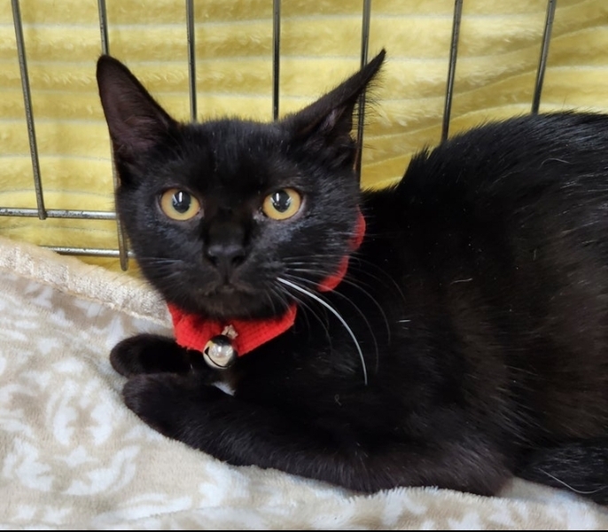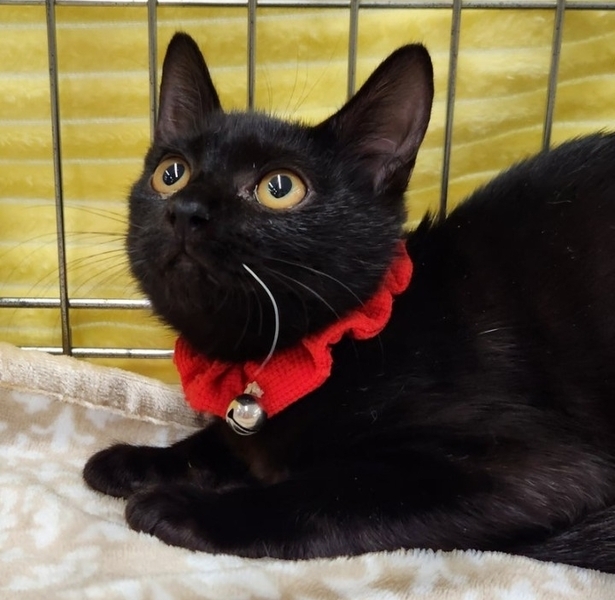 | 特徴(性格など) | 可愛い黒猫の女の仔です 人懐こくごろごろと 抱っこをせがみます 先住猫さんとも仲良しです ごはんおもちゃハンモックが大好きです |