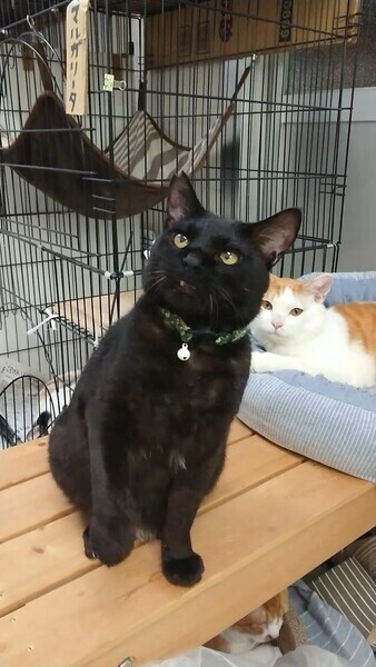 | 特徴(性格など) | 仮称「マルガリータ」です。小柄でずんぐりむっくり、ツチノコ体系の黒猫、男の子です。ふくよかな体系に反して、ウサギの様なボブテイルがちょこんとついていてとても可愛いです。 真っ黒なお顔につぶらで真ん丸な瞳でキョトンとしている表情にやれらます。 人を怖がらず、いつでもナデナデヾ(・ω・*)でき、ブラッシングもさせる甘ったれさんです。 シェルターに居る「つとむ君(掲載№C346125)」と仲良しです。 エイズ、白血病の検査は陰性です。去勢手術、ワクチン、駆虫も済んでいます。 |