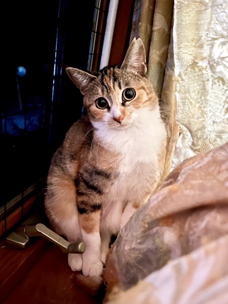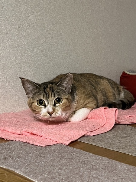 | 特徴(性格など) | ◆うきえちゃん 食いしん坊な丸顔三毛ちゃん ○横浜市内にて、お外で餌をもらって生活していましたが、餌やりさんがいなくなってしまったため保護しました。 ○生後9ヶ月くらい(2024年3月上旬時点)の縞三毛の女の子です。 ○まんまるのおめめとお顔がチャームポイントです♬ ○人が居ても姿を見せてくれるようになりましたが、触ることはできません。 ○食いしん坊でご飯の時は顔を出します。 ○人に馴れるかどうか分かりませんが、気長に付き合ってくださる里親さまをお待ちしています。 ○元気にすくすく育っています。 ★ワクチン2回済み、不妊手術済み。 ★猫エイズ、猫白血病ともに陰性。 ★★お見合いを設定することも可能です。まずはお申込みください★★ |
