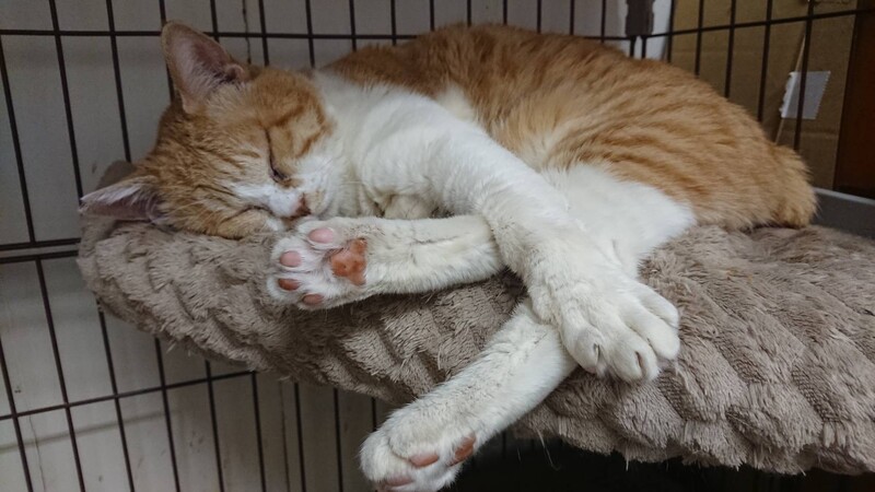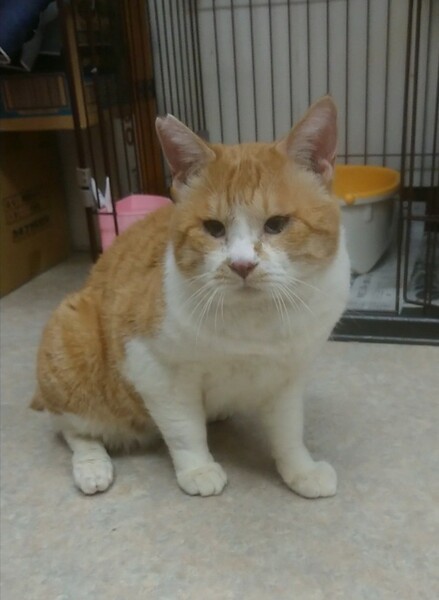 | 特徴(性格など) | 仮称「親分」です。大きな体で貫禄があり、その名が付きました。 エイズ、白血病の検査は陰性です。ワクチン、駆虫も済んでいます。 名前の割に... 見かけによらず 穏やかで、 見かけによらず つぶらな瞳で、 見かけによらず おもちゃでよく遊び、 見かけによらず 気が小さく 見かけによらず 攻撃性ゼロ 見かけによらず 大人しくて、可愛い顔で良く寝てます 他の猫がおもちゃで遊ばれていると、 「俺なんて」ポーズで遠くでいじけています。 食べすぎると吐いてしまうので、食事に注意が必要です。 ちゅーる大好きです。 |