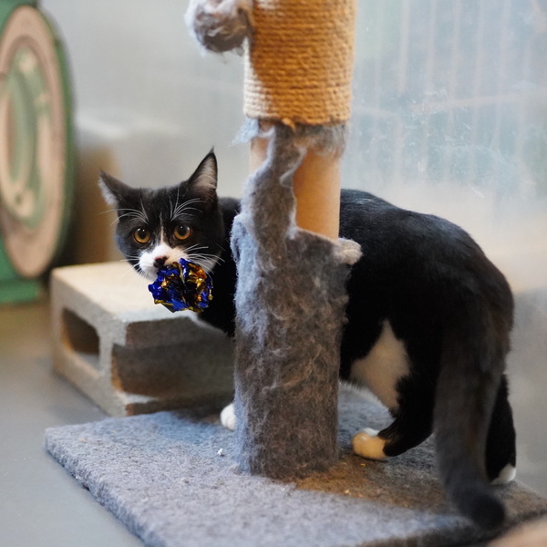 | 特徴(性格など) | 甘えん坊で、動物病院でもずっとゴロゴロ喉を鳴らしていました。 遊ぶのが大好きで、仲良しのトレニアちゃんと毎日追いかけっこをしています。 お魚咥えて商店街を逃げていそうな見た目ですが、毛並みはセレブです。 たくさん遊んだり構って貰えるお家が希望です。 仲良しのトレニアちゃんと一緒のお迎えか、元気な子猫と遊べる先住猫さんのいるご家庭歓迎です。 健康管理や脱走対策の他、子猫が安全に暮らせるよう、お部屋が片付いているご家庭とのご縁を希望します。 |