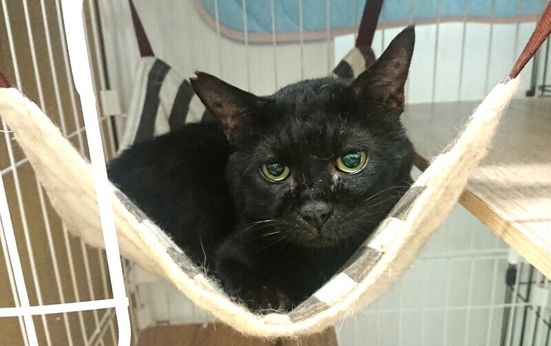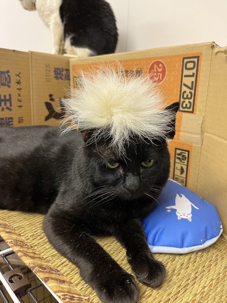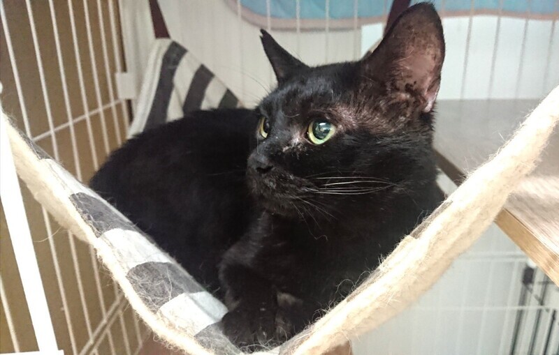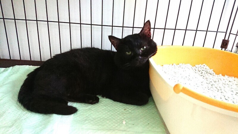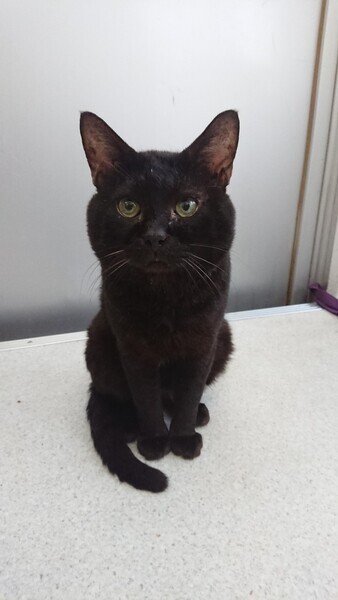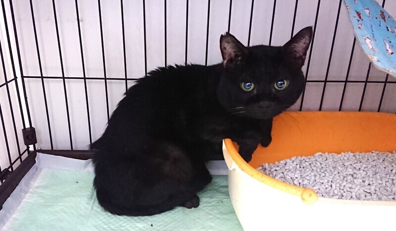 | 特徴(性格など) | 仮称「ヌケ作」君です。綺麗な真ん丸おめめ、長尾の黒猫さんです。 顔も大きく存在感がありますが、とても大人しい子で、まったりとした性格です。人にべったりさんではなく、マイペースで自分の行きたい所に行って寛ぐ、自由な子です。 シェルターでは、人の動きなどをじっと観察しているようです。 食欲もあり、少々メタボ、おじさん街道まっしぐらです。 エイズ、白血病の検査は陰性です。ワクチン、駆虫も済んでいます。 |