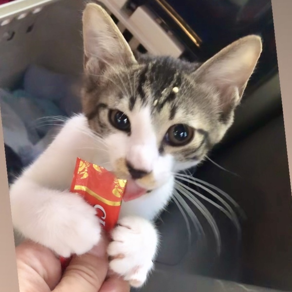 | 特徴(性格など) | 爆ゴロ甘えん坊ニャン♡ 人馴れ抜群、弾丸のように運動会に沢山食べ寝て... 子猫らしい愛らしさ満点です! 男の子らしく、緩いです♡(褒め言葉) かなりの構ってちゃんなので肩のり、頭にもよじ登り髪の毛もおもちゃになります!笑 尻尾は長めですが、先端鍵状。 お顔は...口元の柄がとても愛らしい...♡♡♡泥棒ヒゲ柄!身体はドット柄のような柄可愛いです! お留守番の短いご家庭。兄妹一緒2匹でのお迎え又は年齢の若い先住さんがいらっしゃる環境譲渡条件となります。 |
