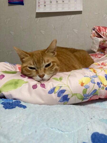 | 特徴(性格など) | ・茶トラ ・これまでずっと1匹だけ飼ってきたので他の動物に慣れておらず、先住犬や先住猫がいる環境は望ましくありません。とてもおとなしい性格です。 |