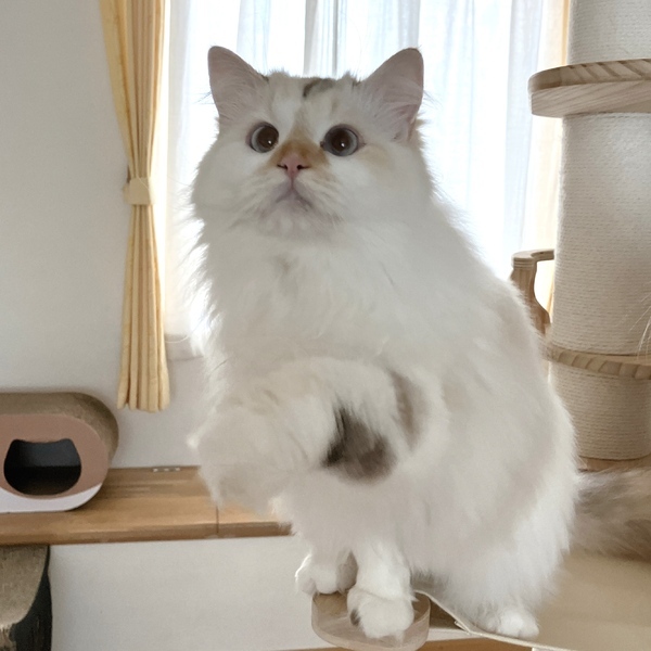 | 特徴(性格など) | 寄り目気味でアクアブルーのつぶらなお目目が可愛い女の子です♡ [毛色]ダイリュートキャリコ 成長とともに毛色が出てきてるので もう少し模様が増える可能性あります。 [体重]3kg(2/4現在) [性格] 抱っこ大好きな甘ったれちゃんです。 常に甘えていたいので猫ちゃんとベタベタ過ごしたい方に向いてます。 短足な手足も可愛いです♡ |